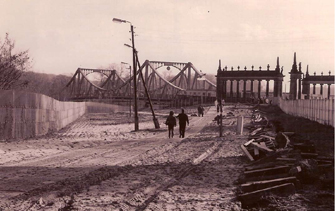 Die Schwanenallee an der Glienicker Brücke unmittelbar nach der Grenzöffnung