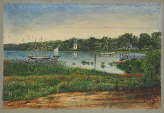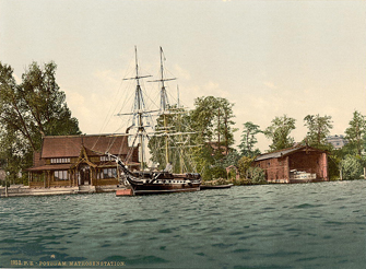 Kaiserliche Matrosenstation Kongsnaes mit Miniaturfregatte „Royal Louise“, um 1900